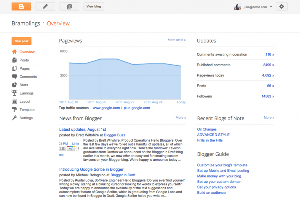 ব্লগস্পটঃ যারা ফ্রি ব্লগিং করতে চান, তাদের জন্য ব্লগস্পট আশীর্বাদ স্বরূপ। ব্লগস্পট সার্চ ইঞ্জিন জায়ান্ট গুগলের একটি সার্ভিস, তাই এর নিরাপত্তা ১০০% । আপনি ব্লগস্পট এর মাধ্যমে খুব সুন্দর একটি ব্লগ সম্পূর্ণ ফ্রিতে তৈরি করে ফেলতে পারেন। ব্লগস্পট দিয়ে ব্লগ তৈরি করলে আপনার এক টাকাও খরচ হওয়ার সম্ভাবনা নেই।